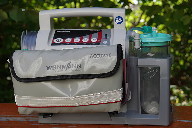 Unsere Absaugpumpe “Accuvac Pro” dient zum Freimachen der Atemwege z.B. bei einer bewusstlosen Person. Neben der automatischen Absaugpumpe, haben wir noch eine manuelle als Rückfallebene dabei.